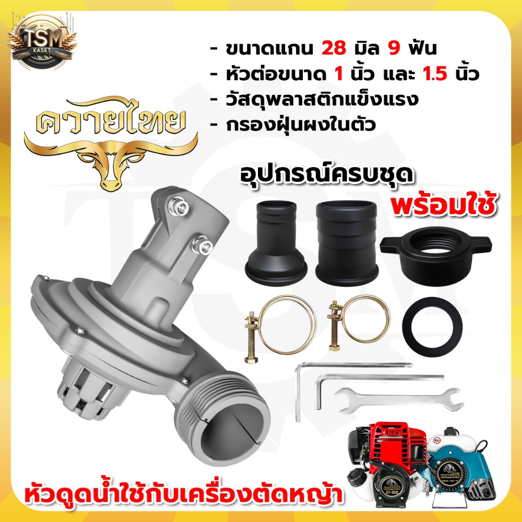 1.ใส่กับเครื่องตัดหญ้า สามารถเปลี่ยนหัวได้ 1 นิ้ว และ 1.5 นิ้ว