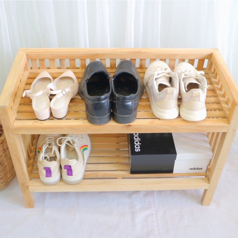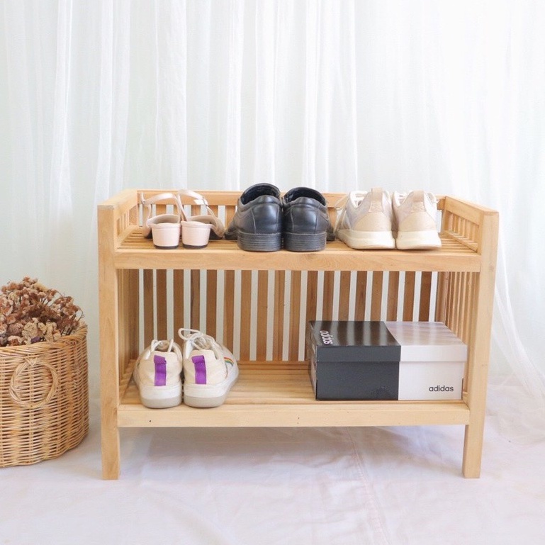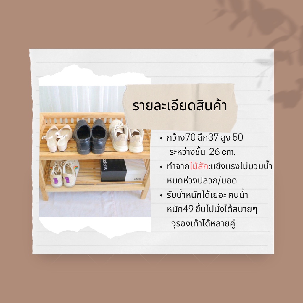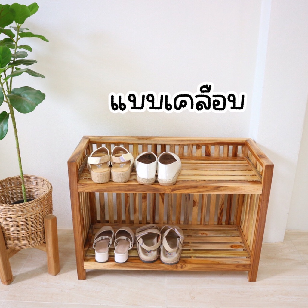 ชั้นวางรองเท้า เป็นงานชั้นงานไม้มินิมอล ทำจากไม้สักแท้ มีความแข็งแรงทนทานสูง สีไม้ธรรมชาติ ลวดลายสวยงามมาก พร้อมใช้งานไม่ต้องประกอบ