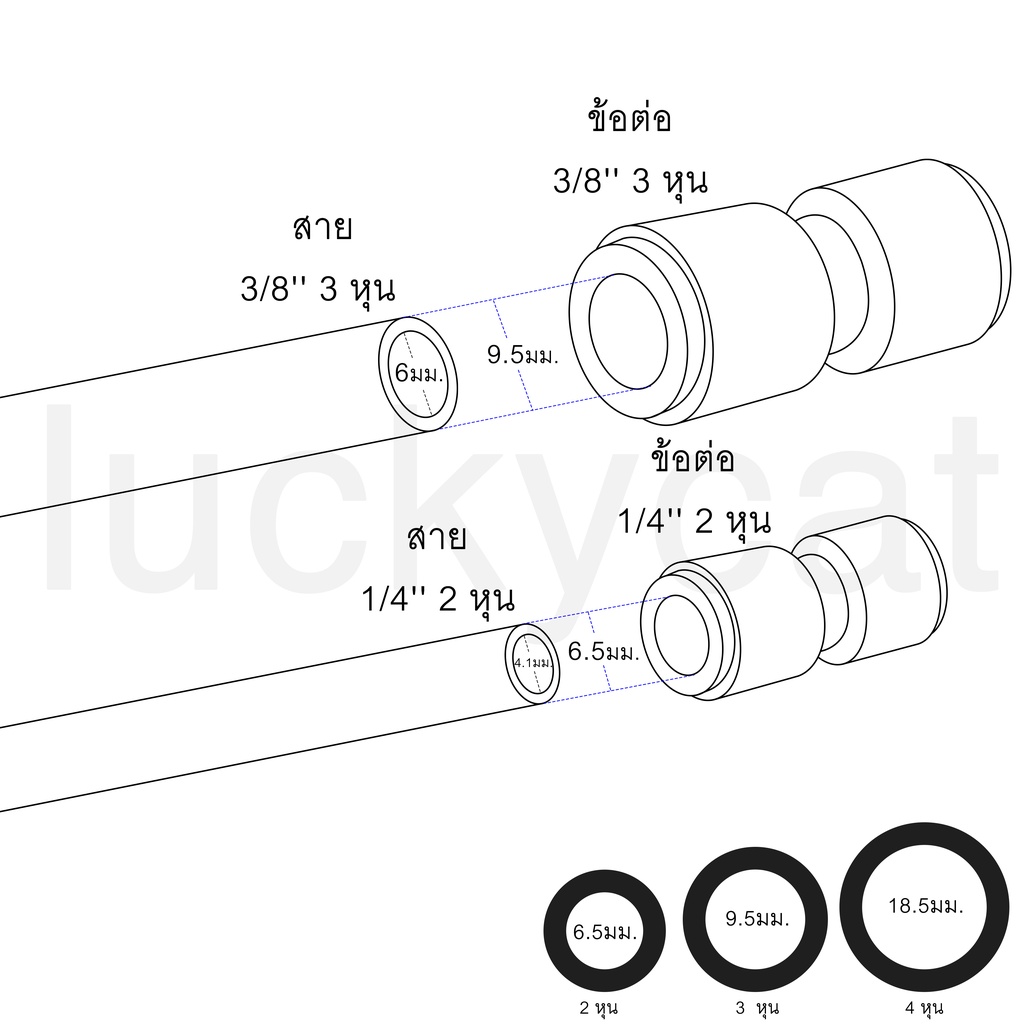 | Model | 1/4'', 1/4'' (2หุน), 3/8'', 3/8'' (3หุน), 1/4, 5/16 2-2.5หุน, 5/6, 5/16 2-2.5หุน, 1/4", 3/8" (2-3หุน), 1/4" (2หุน) มีคลิป, 3/8" (3หุน) มีคลิป, 1/4" 3/8" มีคลิป |