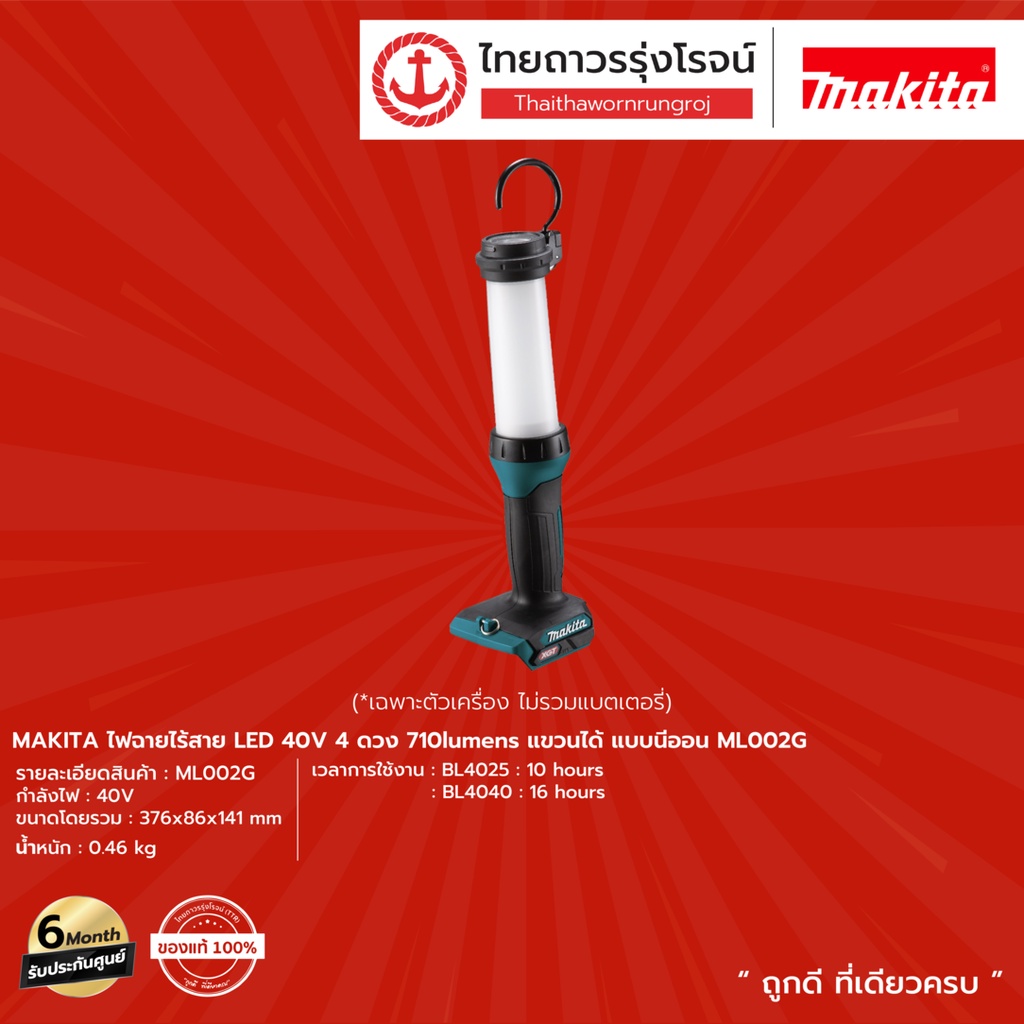 MAKITA ML002 ไฟฉายไร้สาย LED รุ่น ML002G (เครื่องเปล่า) 40v 4ดวง 710lumens แขวนได้ แบบนีออน |ชิ้น| TTR Store