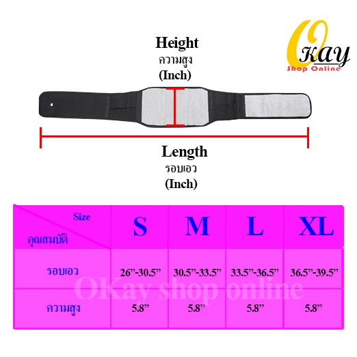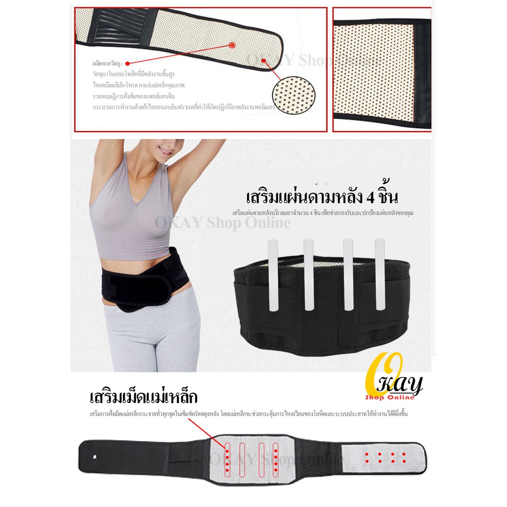 Okay!Shop เข็มขัดพยุงหลังแก้ปวดหลัง มีเม็ดแม่เหล็ก (ทัวร์มาลีน) บำบัดร้อน แก้ปวดเอว พร้อมแกนพยุงหลัง ร้านไทยพร้อมส่ง!