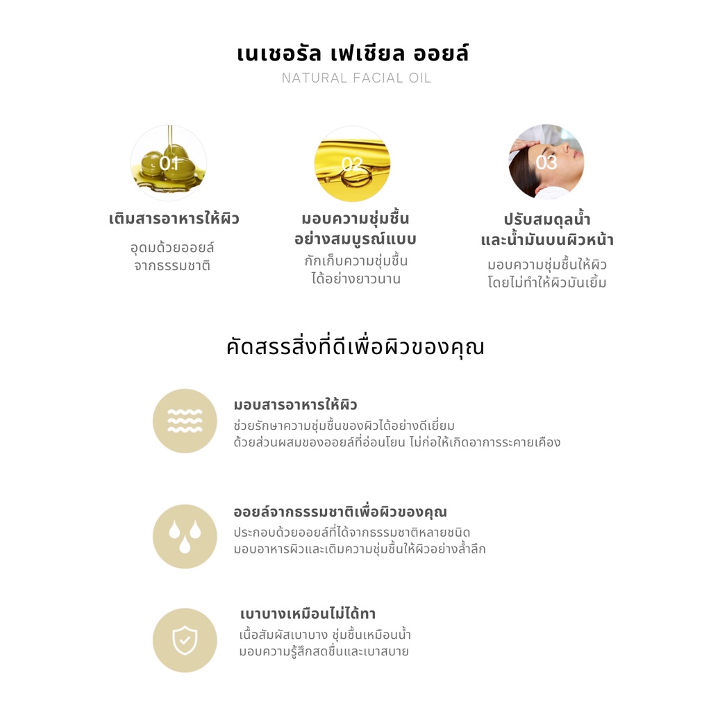 ออยล์เซรั่มบำรุงผิว ซึมซาบเร็ว ไม่เหนียวเหนอะหนะ อุดมด้วยสารสกัดจากธรรมชาติ 100%