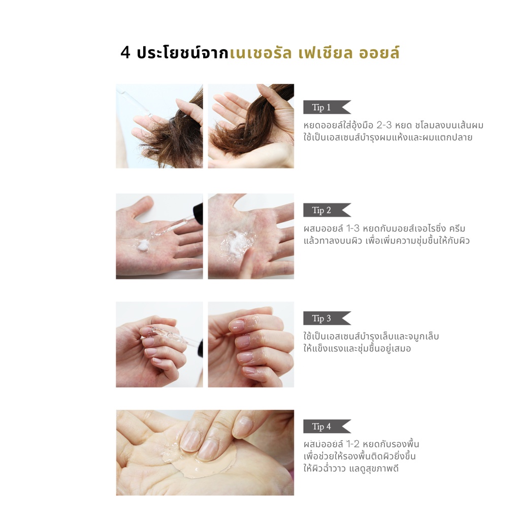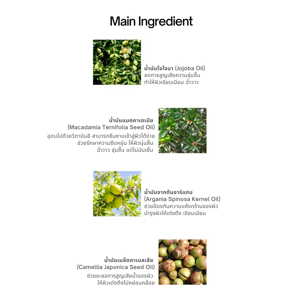 ผสาน Jojoba Oil, Apricot Seed Oil, Argan Oil และออยล์อื่นๆ อีกหลายชนิด