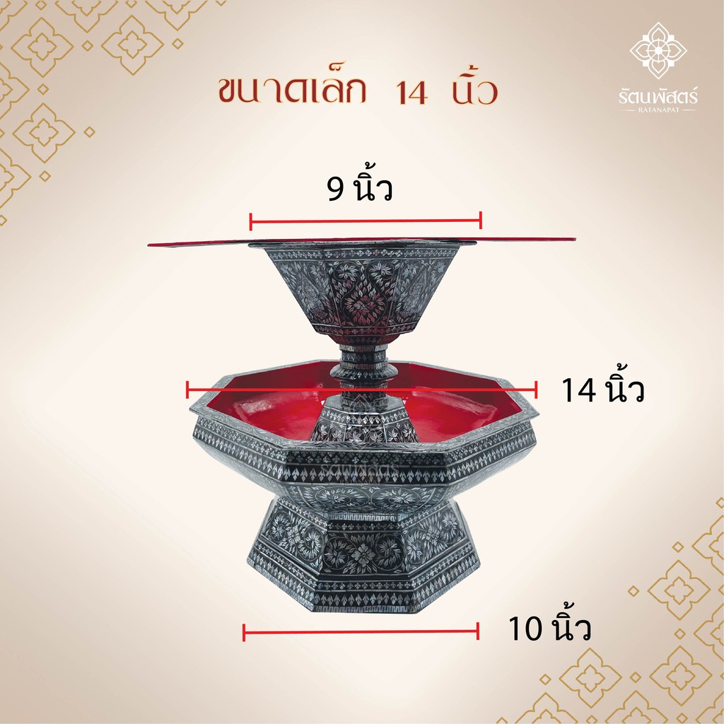 หยิบใส่ตะกร้าพานแว่นฟ้าแบบฝังมุกขนาด14นิ้ว แบบไม้ประดับมุก 2ชั้น