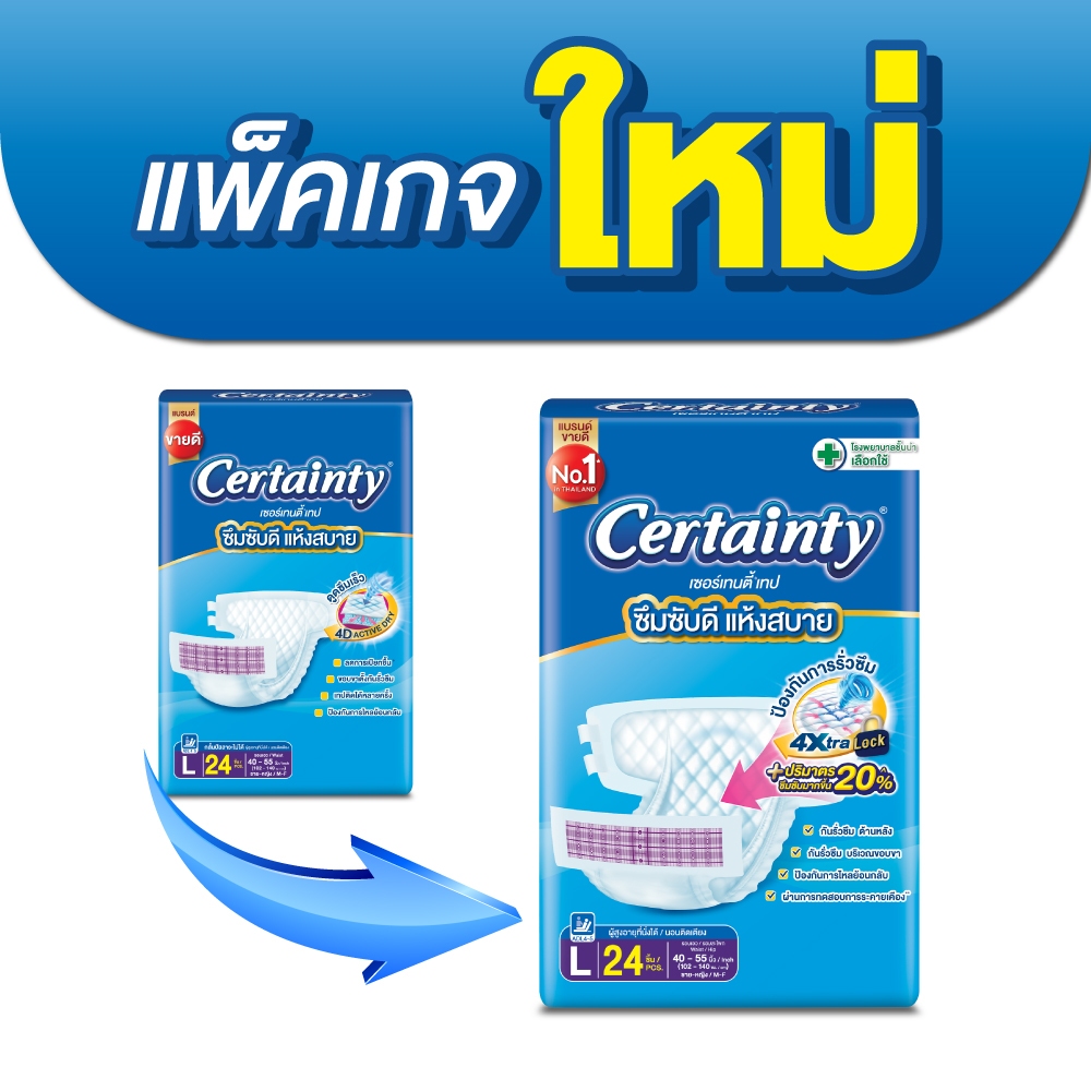 ผ้าอ้อมผู้ใหญ่เซอร์เทนตี้เทป แบรนด์ขายดีในไทย