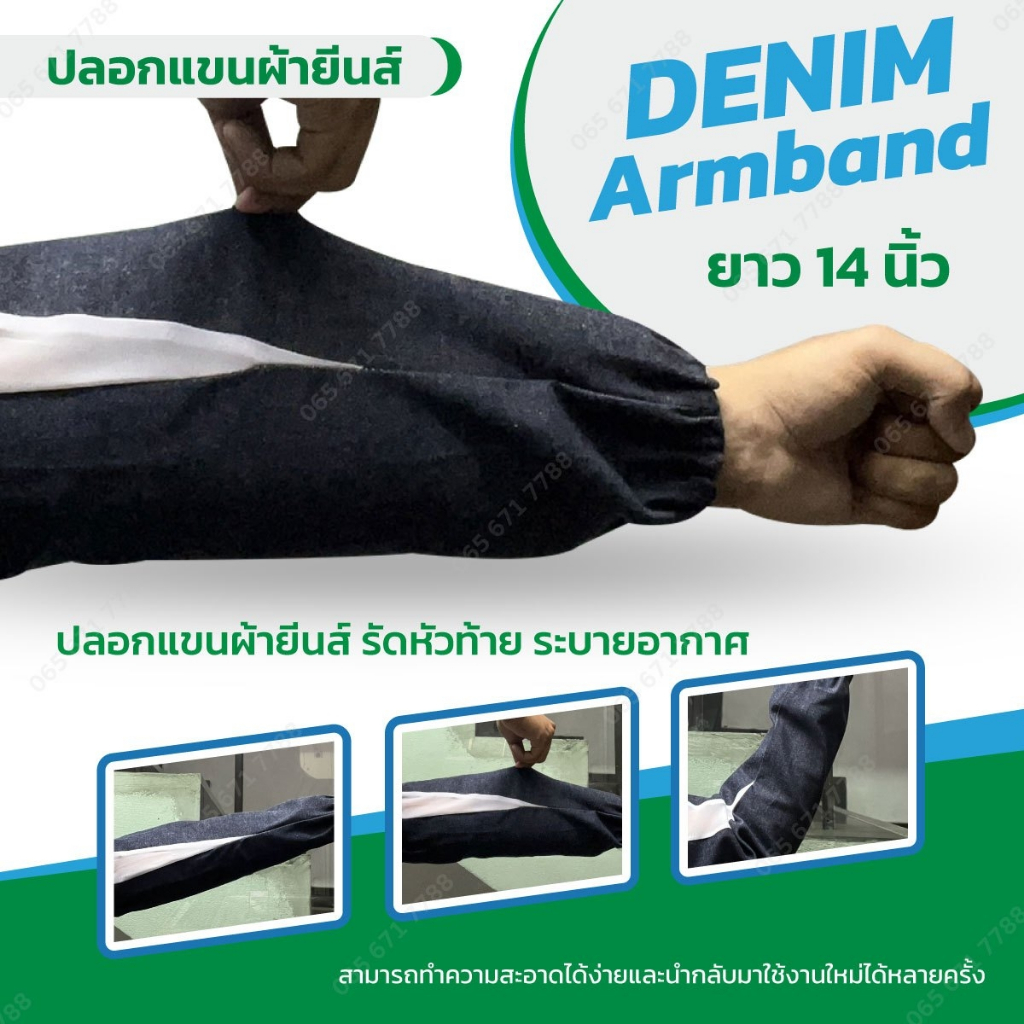 หยิบใส่ตะกร้าปลอกแขนผ้ายีนส์ สวมใส่สบาย มีรูระบายอากาศ ความยาว14นิ้ว