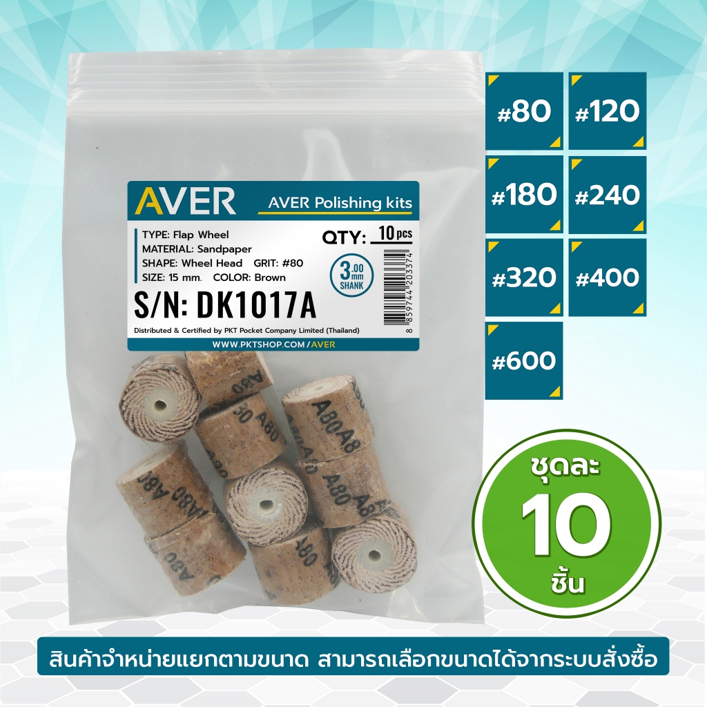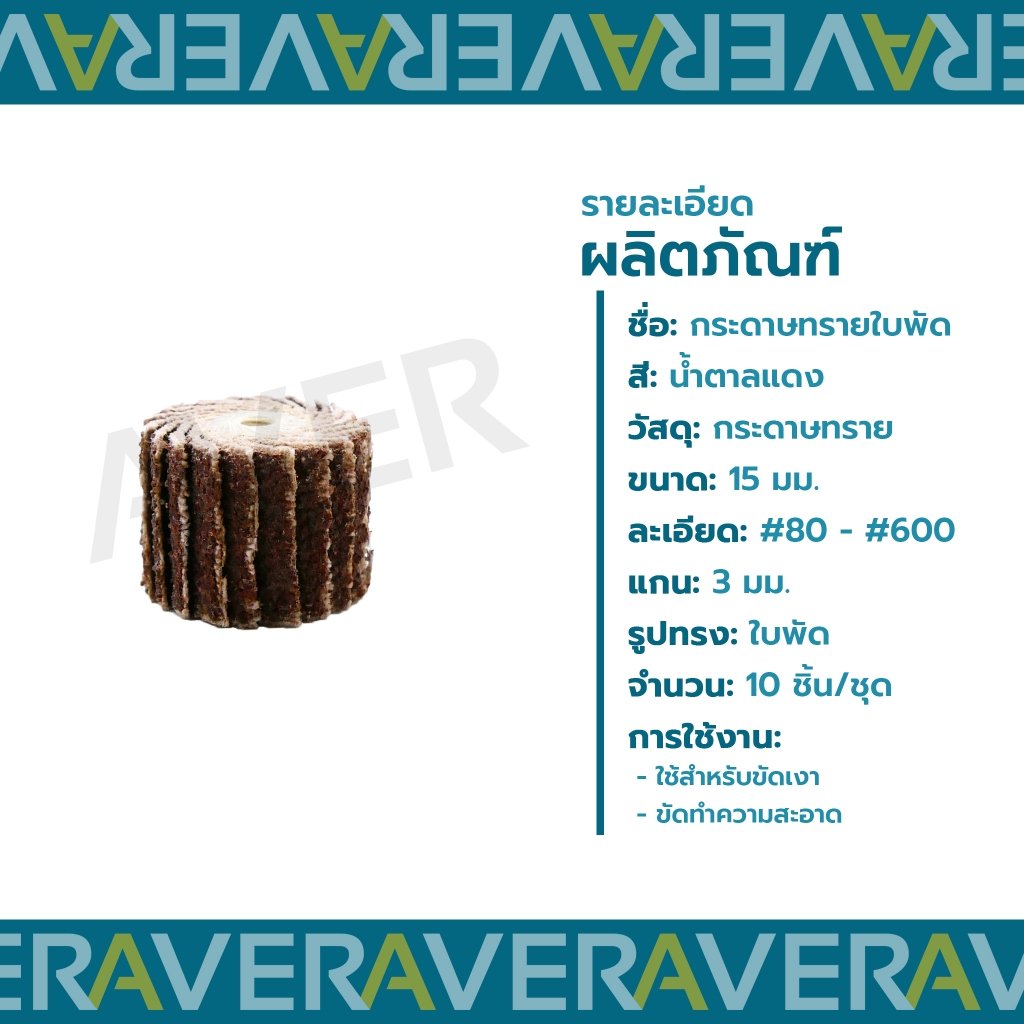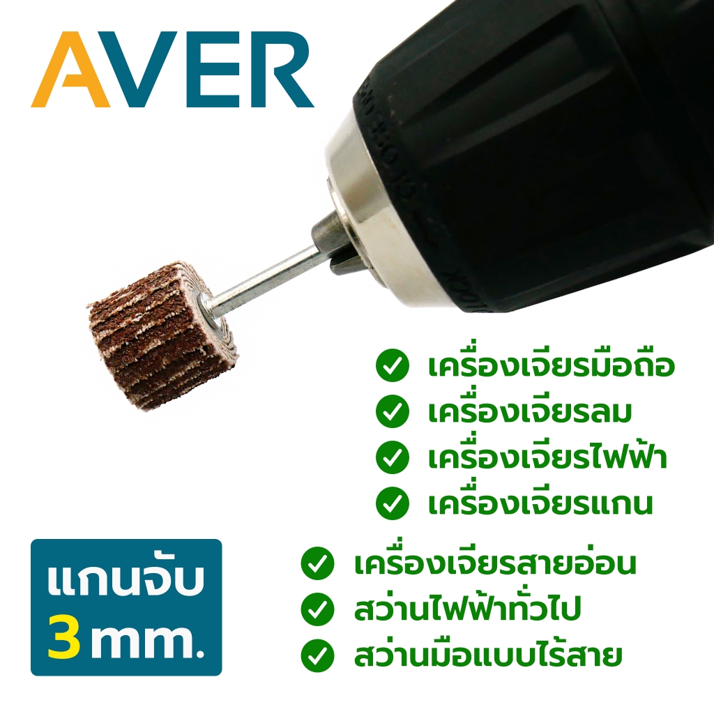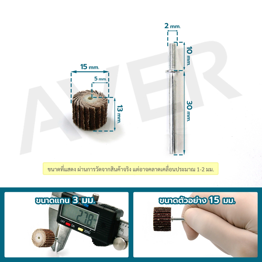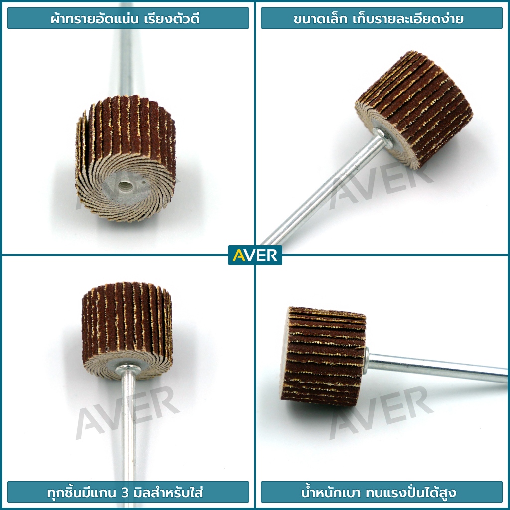 ล้อทราย AVER กระดาษทรายใบพัด ขนาด 15 mm. แกน 3 มิล (10 ชิ้น/ชุด) ลูกขัดกระดาษทราย ลูกขัดล้อทราย ขัดผ้าทราย