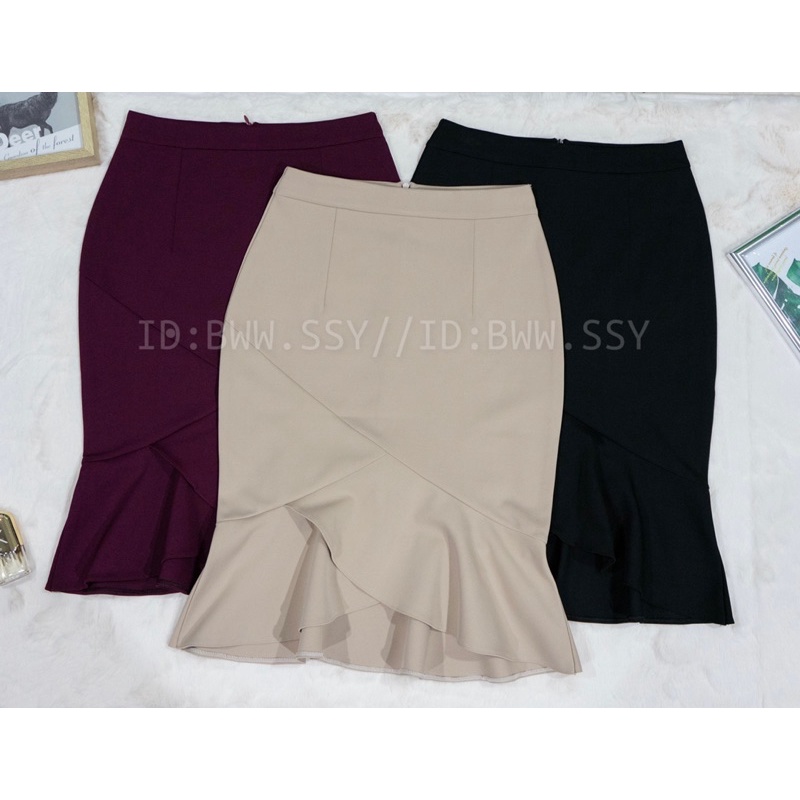 กระโปรงผ้าโรเชฟหางปลาไขว้มีขอบเอว