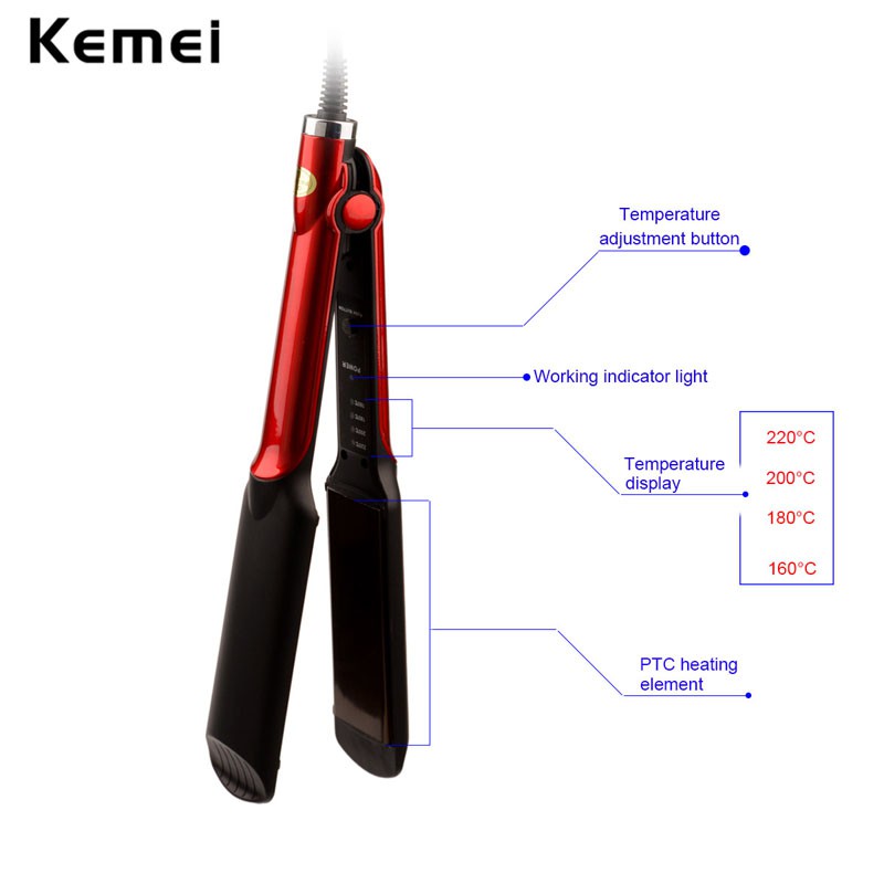 Kemei KM-531 ที่หนีบผม ทำผมตรงหรือลอน ผมตรงสวยเป็นธรรมชาติ ร้อนเร็ว 160°C – 220°C ควบคุมอุณหภูมิได้ เคลือบเซรามิก