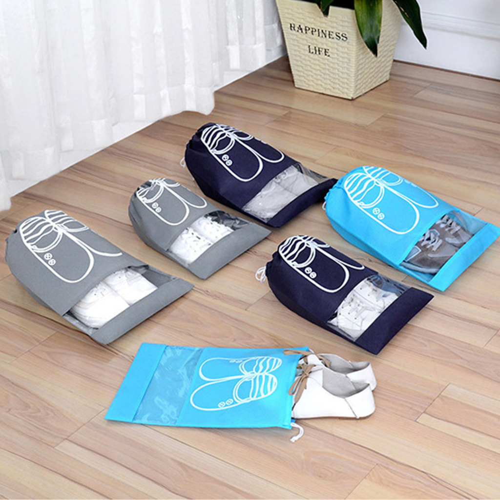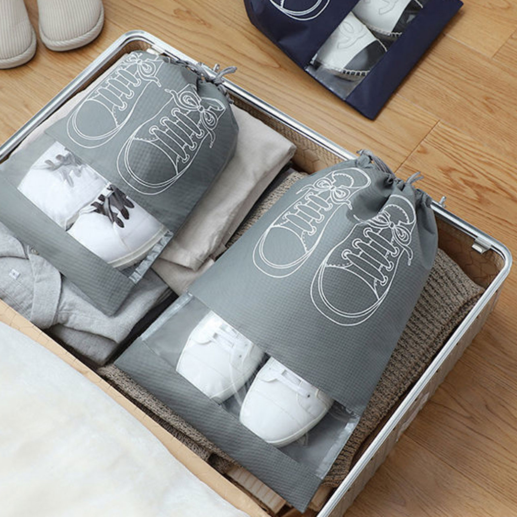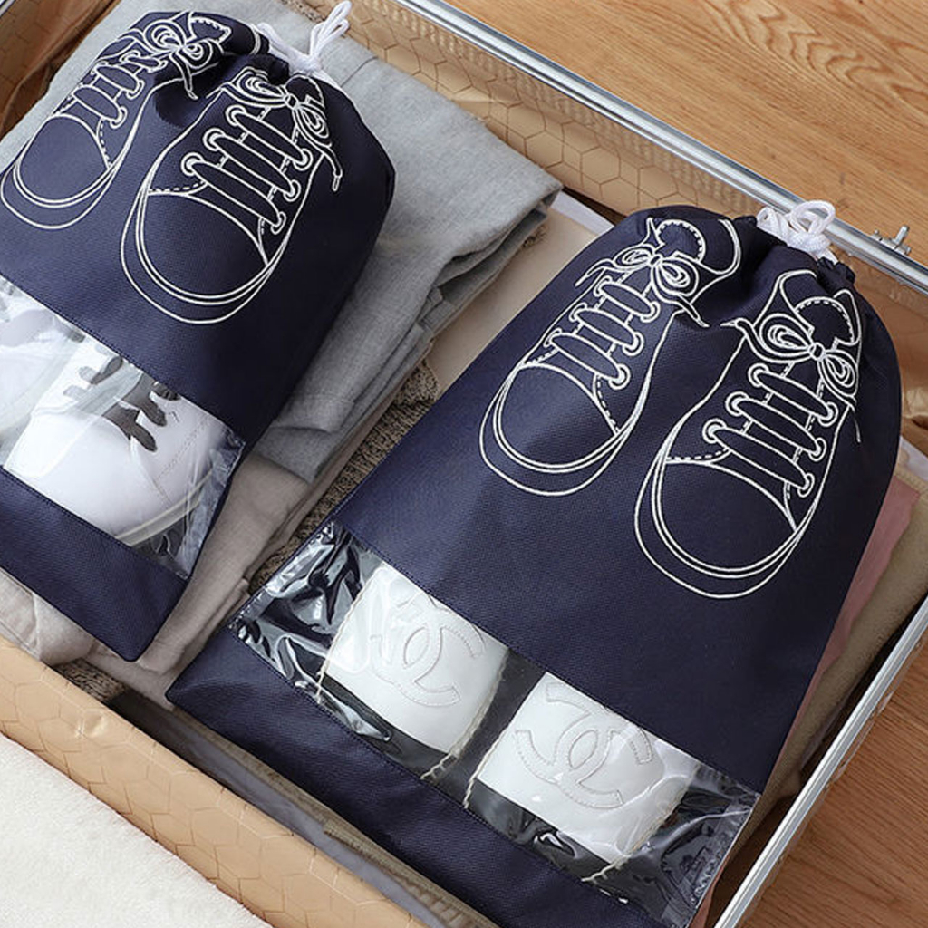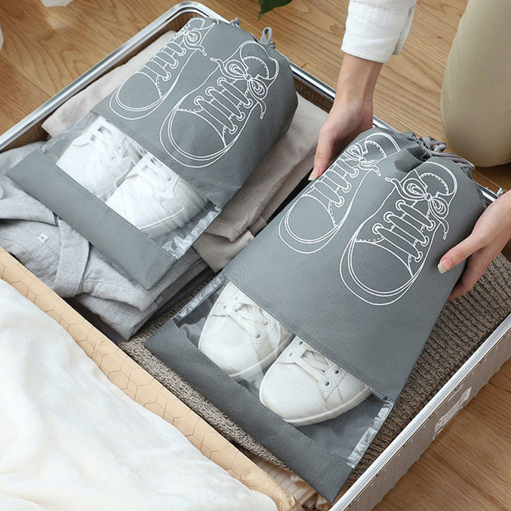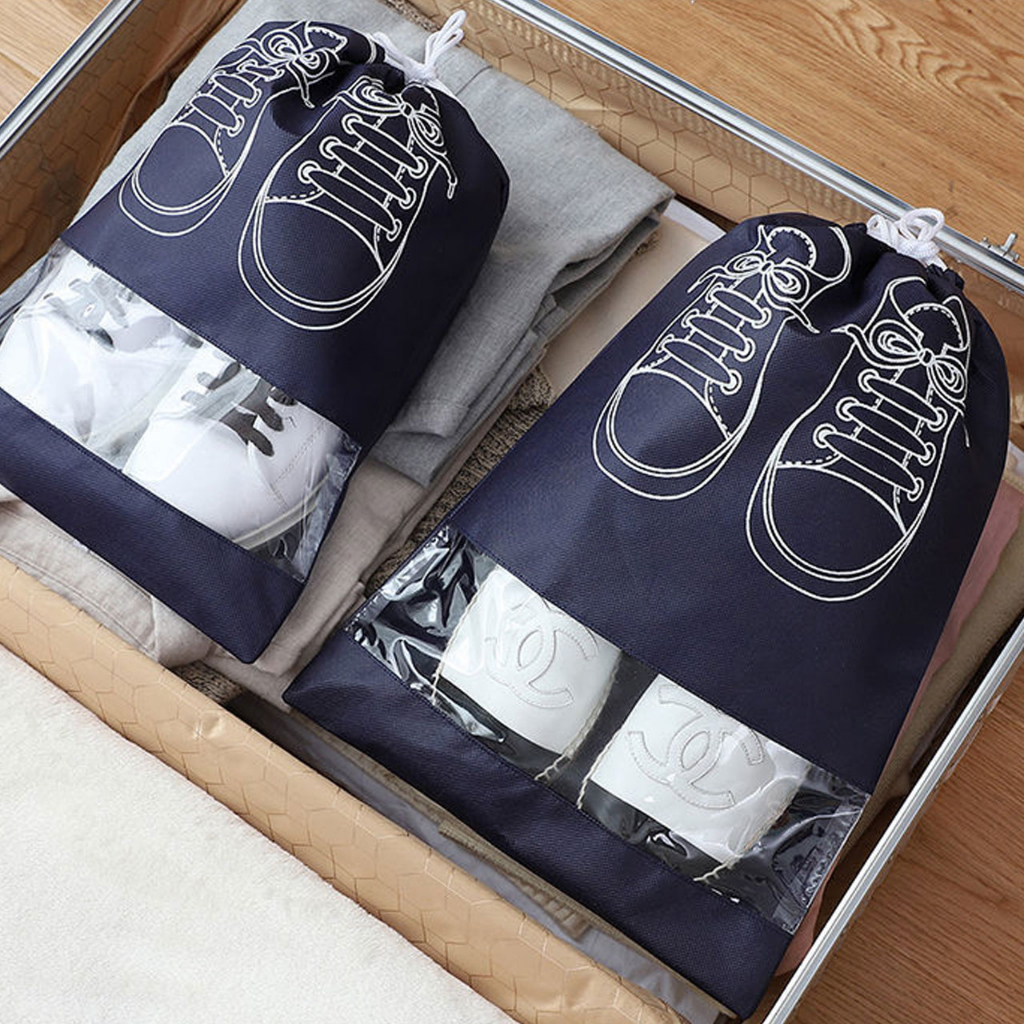 ถุงเก็บรองเท้า ป้องกันฝุ่นมีเชือกรูด สำหรับพกพาเดินทาง ระบายอากาศได้ไม่อับ ถุงเก็บรองเท้าแบบพกพากันน้ำมีเชือกผูกกระเป๋าใส่รองเท้า